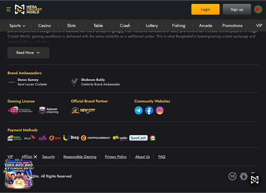 Mega Cricket World operates under a valid Curacao Gaming Authority license, ensuring complete legality for local players. Your data stays safe. The company implements robust security protocols and follows strict fair play practices through RNG certification.