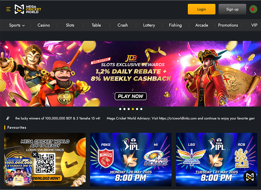 At Mega Cricket World, you’ll find an impressive selection of classic and modern table games. Jump into blackjack, roulette, baccarat, or various poker variants including Texas Hold’em and Omaha. Table limits range from ৳25 for beginners to ৳10,000 for high rollers in our VIP section.